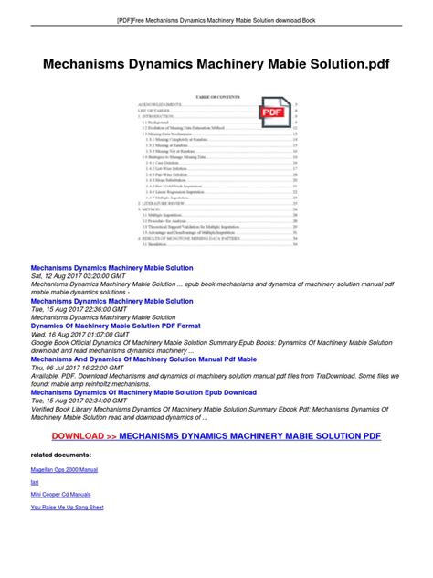 ZWF - Download MECHANISMS DYNAMICS MACHINERY MABIE SOLUTION Nook Internet Archive